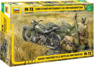 ZvezdaZvezda Soviet Motorcycle M-72 W/ 82cm Motar 1:35 Z3651
