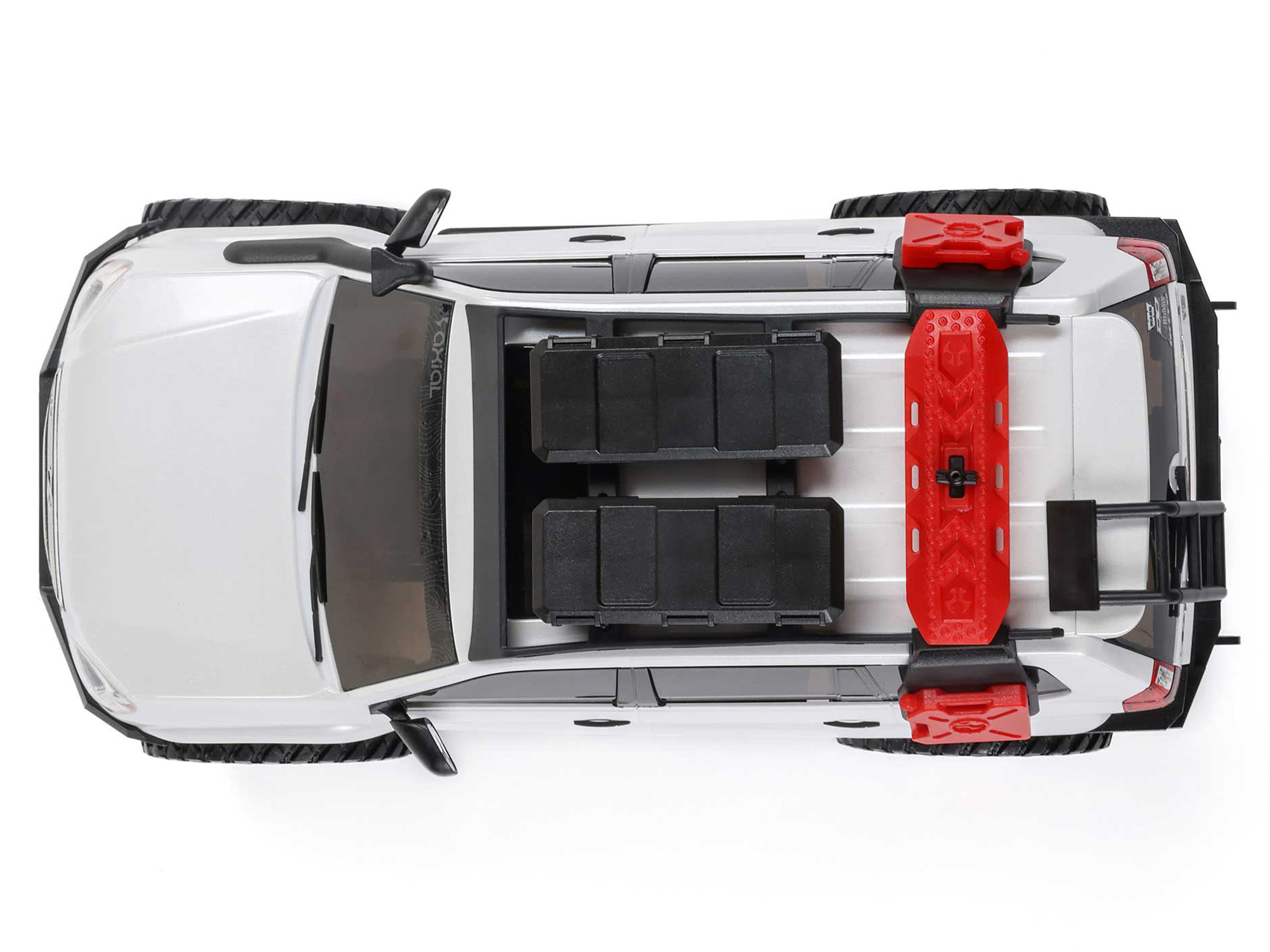 With its officially licensed, extra-durable ABS hard body, the GX 470 matches that performance with an exceptional amount of scale realism. The body comes factory-finished in white, silver, or black, and is topped off with scale accessories and working lights. Officially licensed Black Rhino Raid wheels and Nitto Trail Grappler M/T tyres complete the picture while boosting the rig’s capability to conquer a wide range of surfaces.