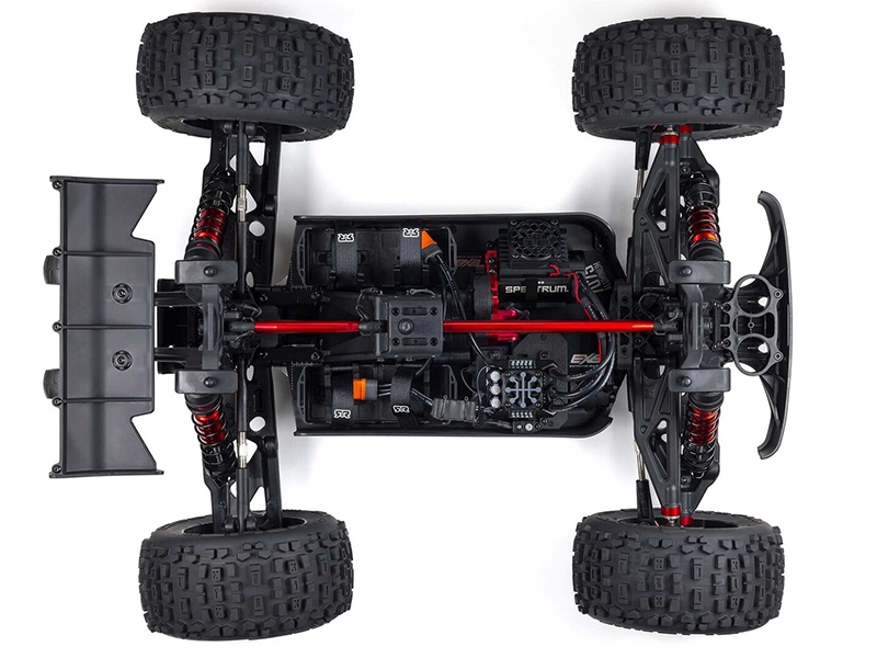 Punchy and powerful, the new Spektrum™ 8S-capable brushless system features a massive 5687 FIRMA™ 1100Kv brushless motor with a huge 56mm diameter and 10% more torque than the previous OUTCAST™ 8S RTR. The new motor is paired with a Spektrum™ S6510 steel gear servo that puts out 820 oz-in of torque at 8.4V — nearly 50% more muscle than its predecessor. The new RTR package also includes a Spektrum™ FIRMA™ 160A V2 Smart ESC and Spektrum™ DX3 3-channel 2.4GHz DSMR radio system, with Spektrum AVC technology built-in to keep the huge power under control.
