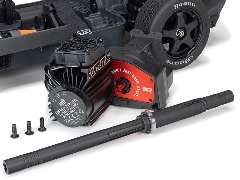 High performance dBoots Hoons belted tires are standard, delivering the all-road grip you need for tarmac, gravel, and everything in between. The iconic Infraction body, available in Blue/Red, Red/Black, and Teal/Pink, turns heads before you’ve even hit the throttle. Waterproof Spektrum electronics keep the fun rolling through puddles and mud and provide clean, responsive control and easy serviceability. The Spektrum SLT3™ transmitter adds helpful control as you level up. Add your 2S or 3S LiPo and discover how much ground a 65+ MPH street machine can cover.