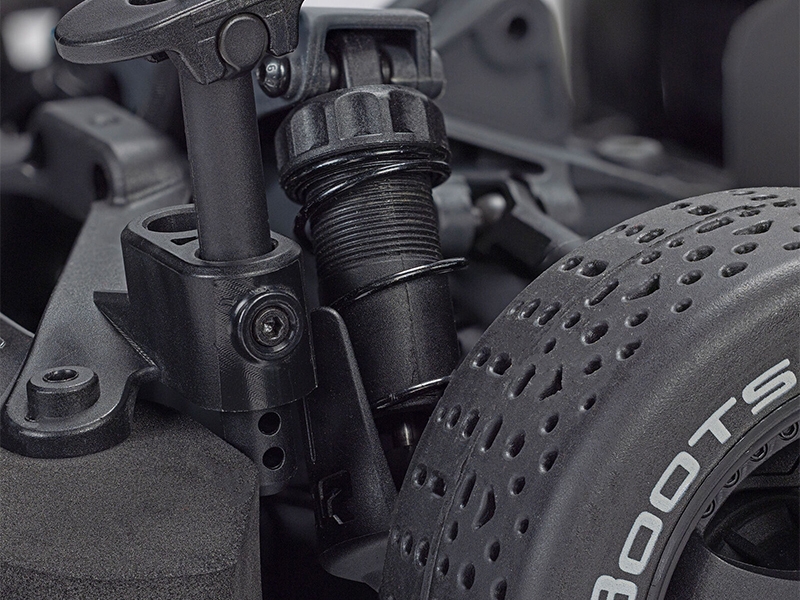 Under the aggressive Infraction body sits a re-engineered drivetrain. Metal-geared 37T 1.35 MOD differentials, steel input gears, and dual rubber-sealed bearings throughout mean this platform is built to absorb punishment run after run. The transmission overload coupling handles shock loads and protects your gears without requiring any slipper clutch tuning. All you need to do is bash and let the system take care of itself. It means you get cleaner launches on high-grip asphalt with fewer blown diffs.