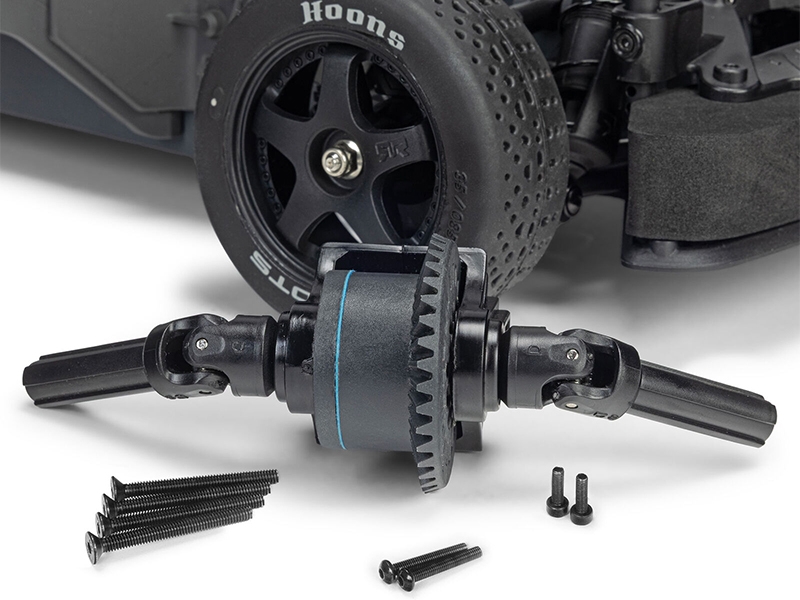 - Metal-geared drivetrain with 37T 1.35 MOD diffs, steel input gears, and transmission overload coupling