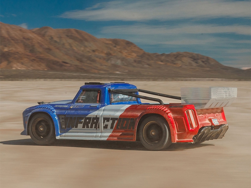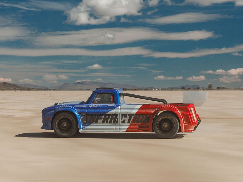 The ARRMA INFRACTION 223S BLX DSC 4X4 RTR delivers. Because the street is better at full speed.