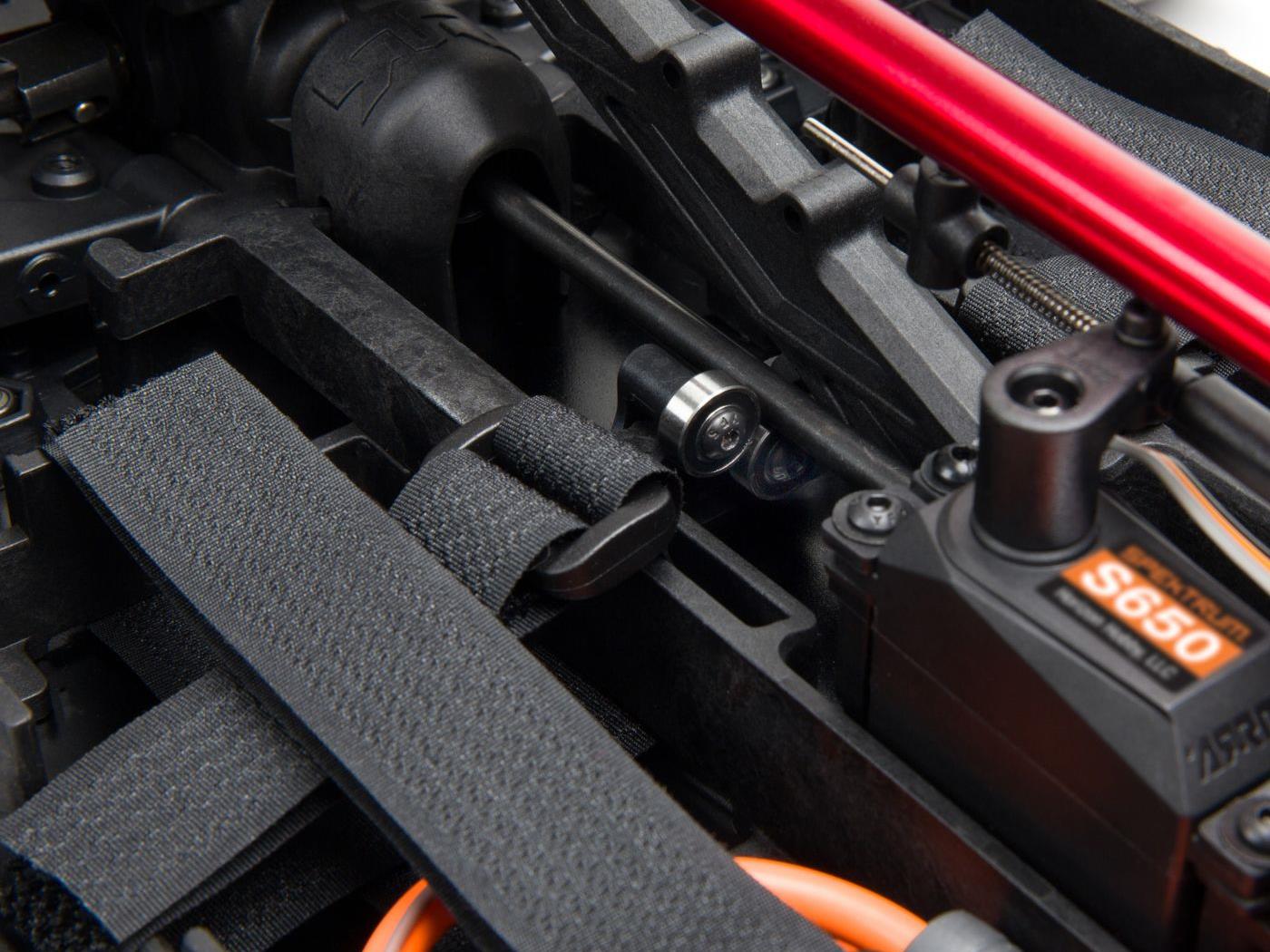 Another feature new to the INFRACTION™ 6S BLX 4WD is a handbrake. The chassis includes a module for a rear vented disc brake and a powerful Spektrum® SPMS650 brake servo. You control the handbrake from a convenient switch on the DX3™ transmitter for thrilling drifting, “hooning” and stunt action.