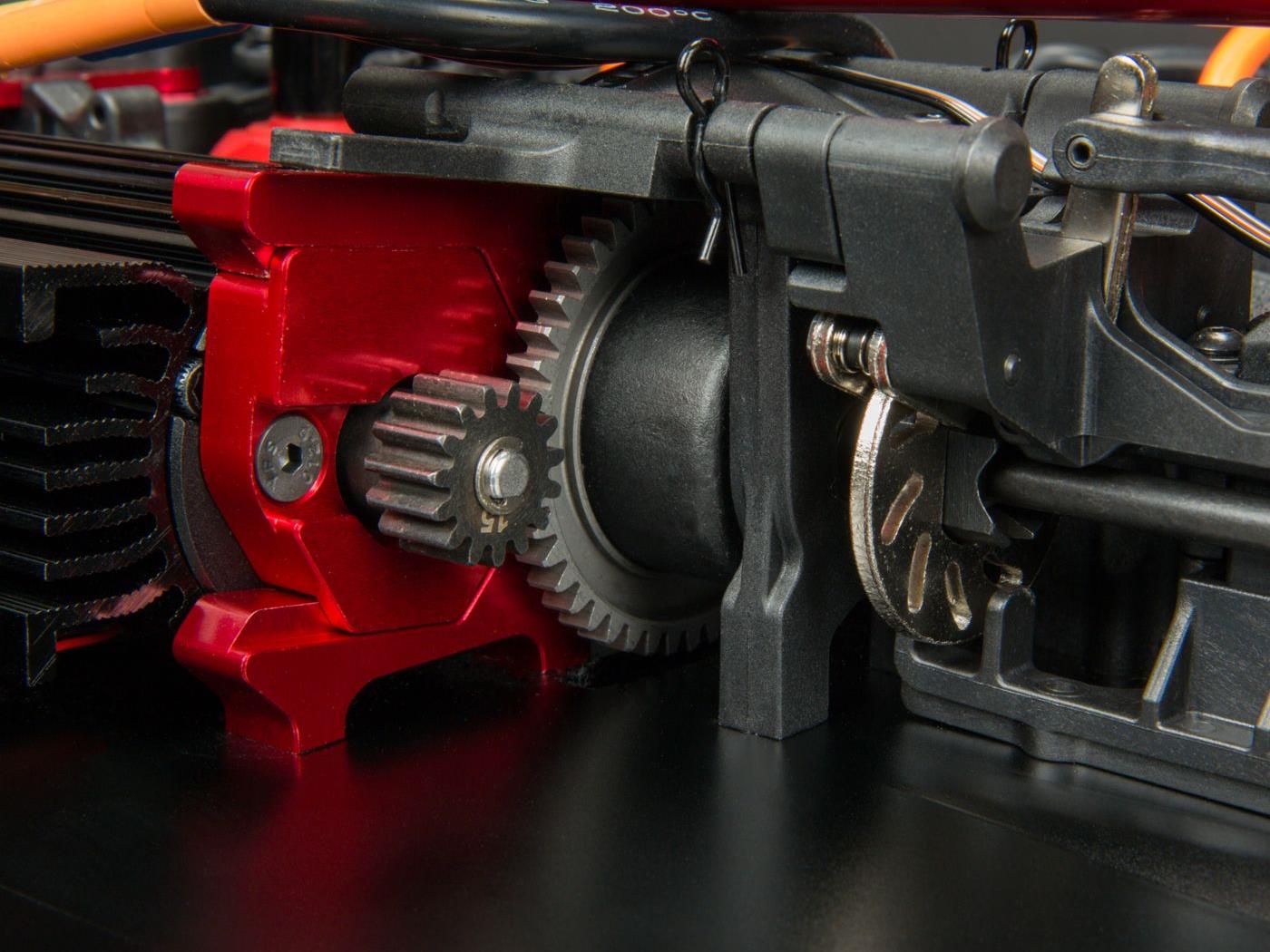 - Lower internal gear ratio to reduce the center line transmission RPM, reducing center drive shaft resonance and increasing drivetrain durability