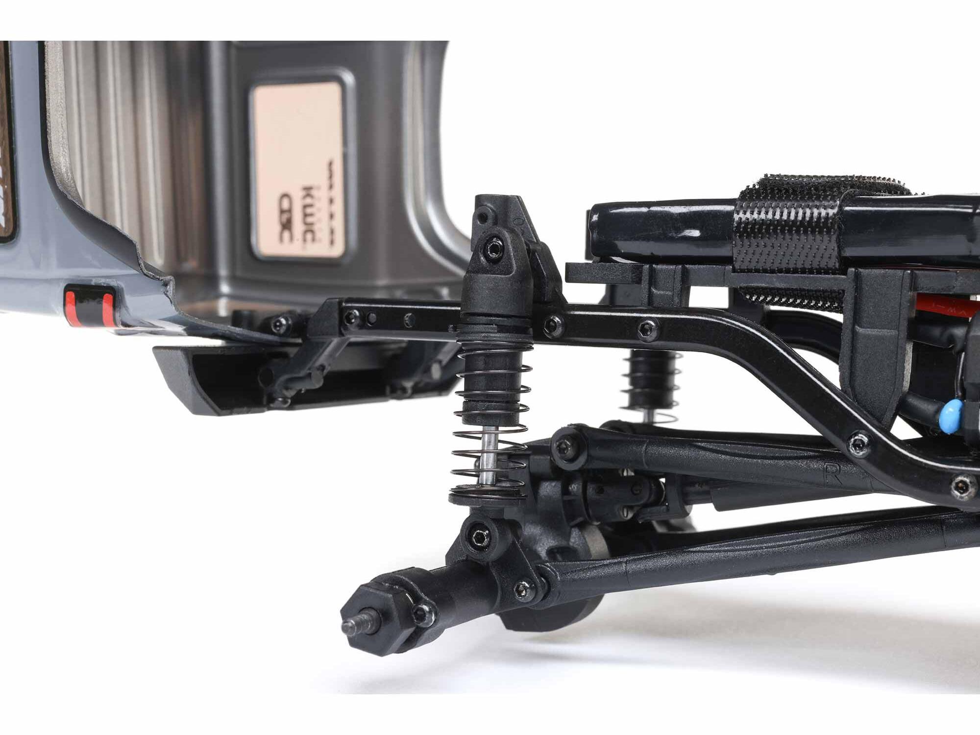 The front and rear axles consist of a two piece, molded composite solid axle design. For optimal handling, the SCX24 suspension features a 3-link front and 4-link rear setup.