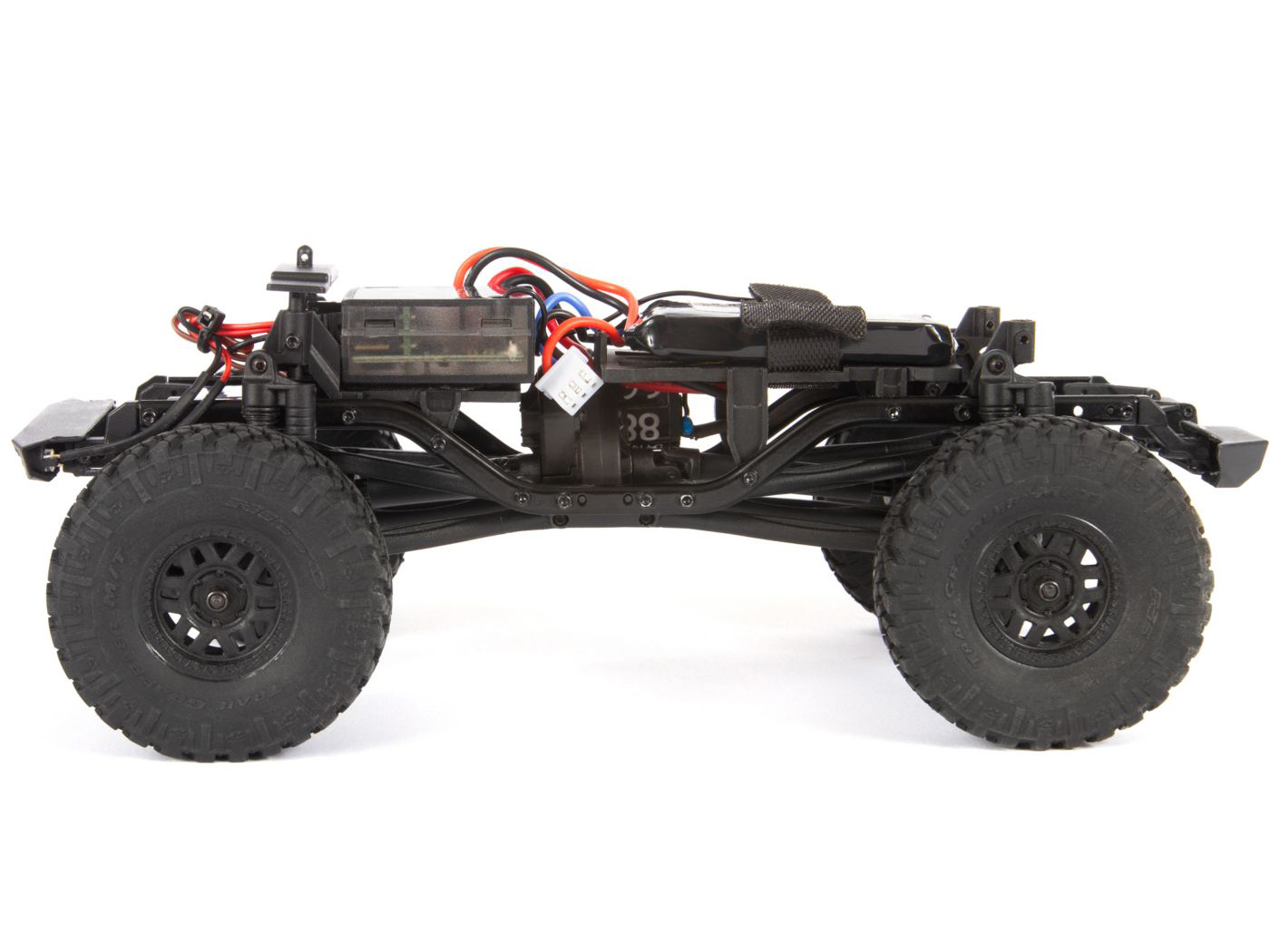 Even at this small scale, the combination of coilover shocks with simulated reservoirs and durable plastic suspension links delivers the crawling performance you’ve known and expect from Axial.