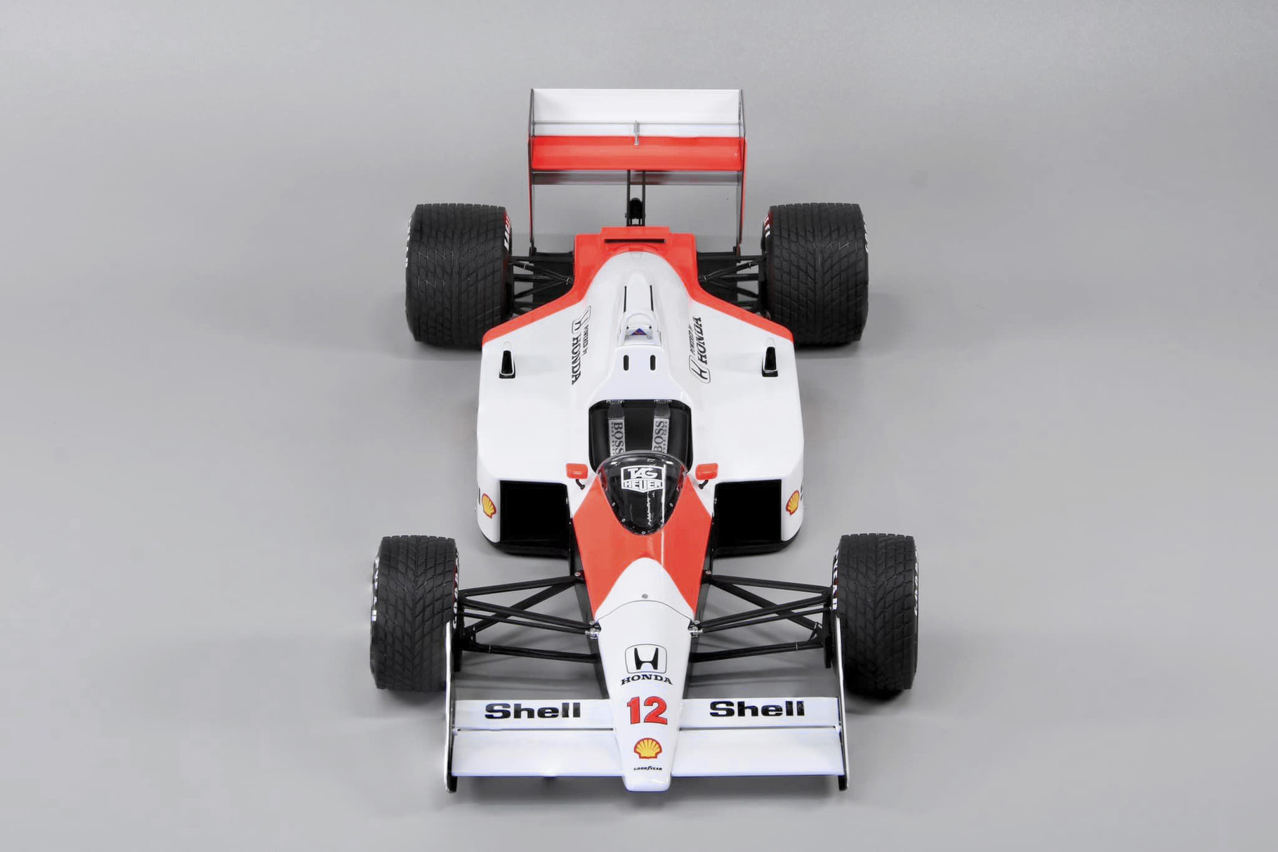 Based on the McLaren-Honda MP4/4 that competed during the 1988 Formula One season, the subject car was powered by Honda’s RA168E 1.5‑litre V6 turbo engine and driven by teammates Ayrton Senna and Alain Prost. The design was led by Steve Nichols in collaboration with Technical Director Gordon Murray, contributing to what is widely regarded as one of the most successful Formula One car designs of all time.