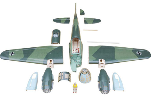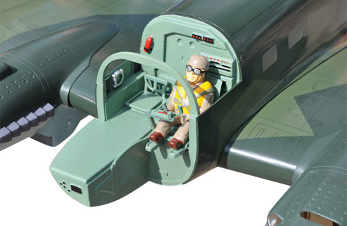 Faithfully recreated by Black Horse with laser cut balsa and ply parts that have been lovingly assembled at the factory in multiple jigs by highly skilled workers. The result is a strong, yet amazingly light, airframe that helps dramatically to make flying a pleasurable experience. Just look at the quality of the workmanship to see what we mean! The distinctive ‘greenhouse’ nose houses a full front cockpit that been pre-painted (including full a length pilot) keeping your work to a minimum. The He111 is supplied capable of both electric or IC power but as a twin it is ideally suited to electric power for easy of use. There is a large hatch on the top of the fuselage for easy battery access and maintenance. This doesn’t mean you can’t fly it IC though as there are fuel tanks and mounts included. • Detailed full nose cockpit and pilot |