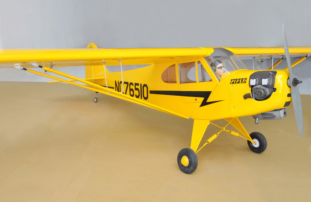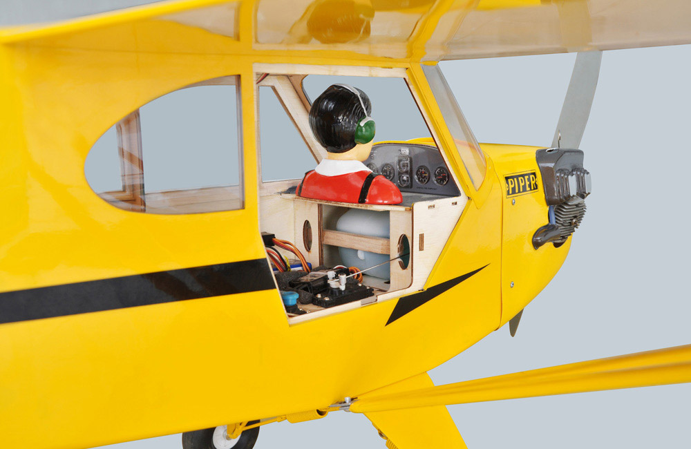 With scale wing struts, simulated scale undercarriage and a dummy scale engine, this big Cub needs just a 1.20 four stroke engine to power her but using her as a glider tug may need a little more.