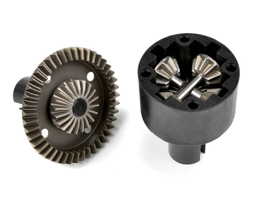 - Three fluid-filled precision differentials with CNC spiral-cut metal input and main gears.