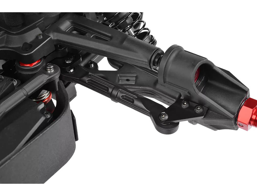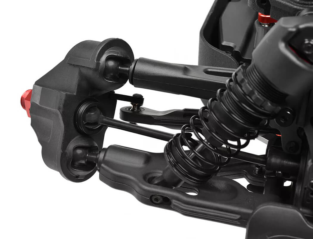 The Kagama4 is engineered to conquer any terrain with its advanced suspension system. Incorporating proven components from the Radix6 and Sketer, as well as Kagama’s rugged wide steering blocks and rear hubs, this truck ensures top-notch performance. New composite towers, coupled with 4mm CNC machined arm holders and precision-engineered links, provide the ideal balance of durability and performance. The heavy-duty composite big bore shocks allow the Kagama4 to handle any terrain with ease!