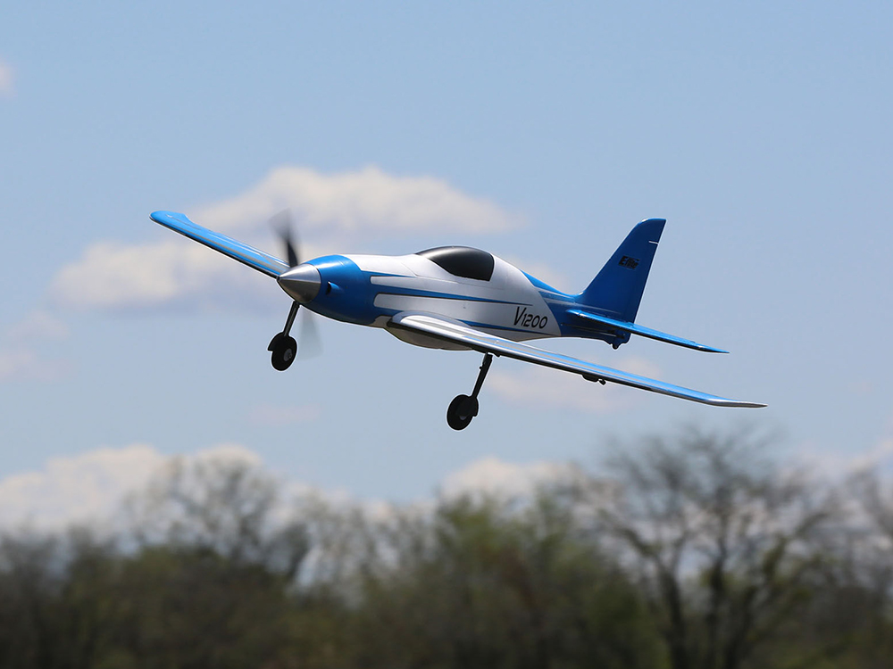 The V1200 is faster than any prop-driven E-flite airplane yet! It can reach level-flight top speeds of 140+ MPH on 6S, or 110+ MPH on 4S, right out of the box. It’s also equipped with flaps, retracts and Smart to deliver an experience like no other!