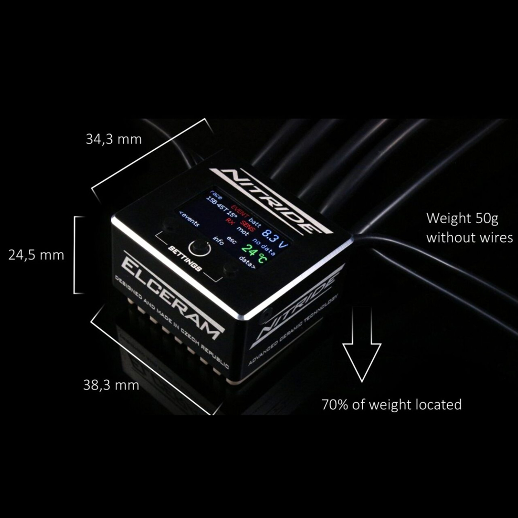 NITRIDE comes with a breakthrough in RC motor controlling – LCD color display. Thanks to this you can set all the parameters and check all data directly at your ESC, without need of any programming card or a mobile application. All you need is inside your ESC.