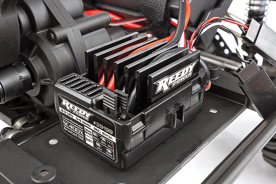 The Enduro Trailwalker 4×4 comes ready for adventure right out of the box with performance-driven Reedy Power electronics. The all-new, ultra-smooth, and powerful 16-turn, 5-slot brushed crawler motor and Reedy Power SC400X electronic speed controller with T-plug connector supply ample power to this tough rig. Controlling the beast on the trail is our new 3-channel XP130 2.4GHz radio and Reedy Power high-torque 1320MG metal-gear servo.