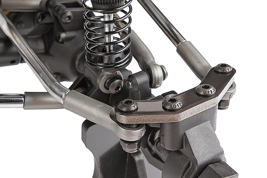 We relocated the steering link assembly from the conventional location (in front of the axle) to behind the axle (BTA). This feature greatly improves approach angle and front-end clearance, making rough terrain much easier to handle.