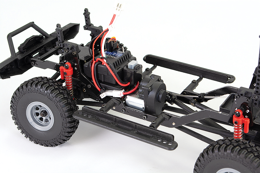 Pick from a selection of three different classic trail off road truck bodyshells that all feature additional moulded accessories, along with factory fitted LED lights. The high torque transmission and 88T micro motor deliver superb slow speed control, while the locked front and rear axles provide the drive to tackle most inclines. Multi-link suspension, coupled with sprung shock absorbers create excellent articulation to help tackle uneven surfaces.