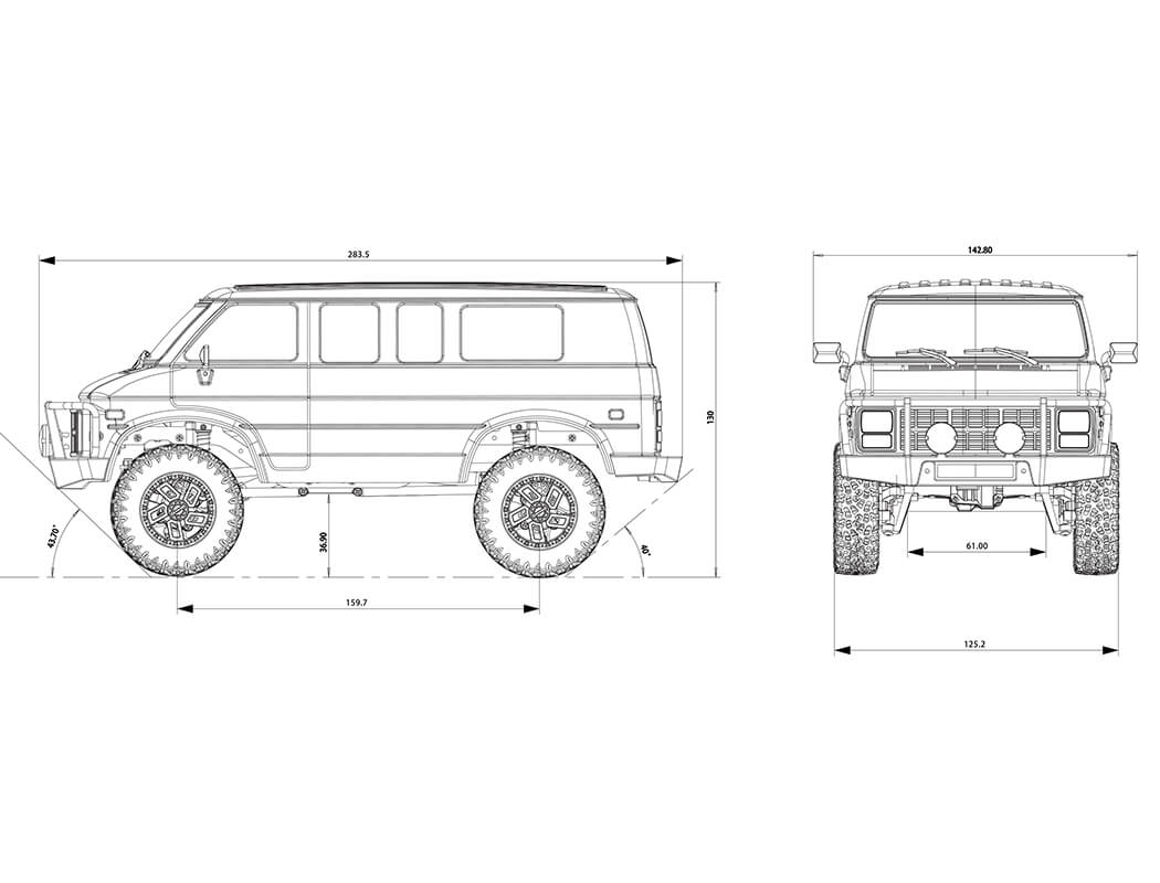 On the outside, scale finishing such as moulded bumpers, full function LED light system mounted in moulded light buckets with lenses, wipers, mirrors, bead lock wheels and hidden body mounting make the Rock Van a real head turner. Furthermore, optional accessories such as inner body fenders, brass wheel weights and oil filled shock absorbers will take your rig to a whole new level of scale performance.