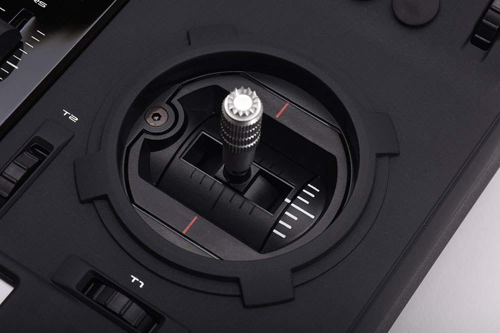 The ergonomically arranged switches and encoders allow fatigue-free operation during long flights and the set includes 2 aluminium joystick extensions to adjust to the pilot if needed.