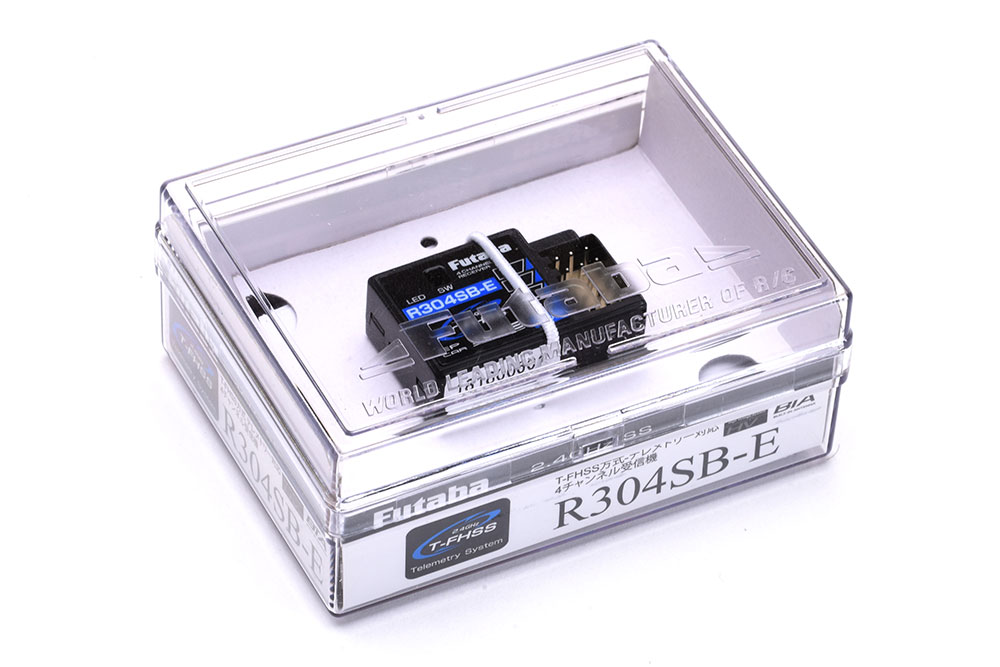 The R304SB-E is a compact little 4 channel receiver using T-FHSS telemetry designed for use with electric cars. Suitable for HV applications the R304SB-E has an operating voltage range of 3.6 up to 8.4v. The R304SB-E has a compact built-in aerial allowing for easy clean installations.