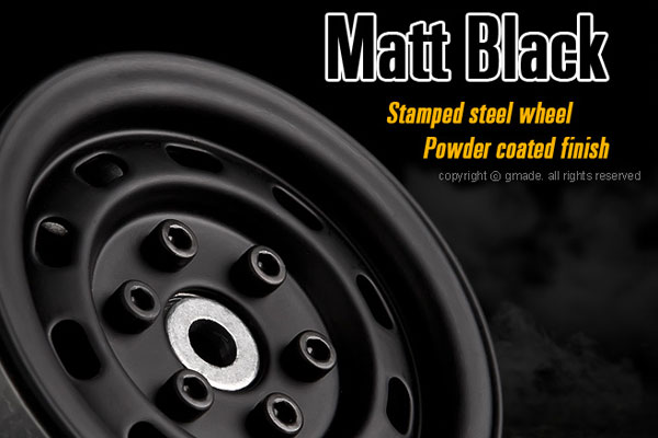 Stylish rock crawler beadlock wheel from Gmade. Available in 4 colors – Matt black, Gloss white, Semigloss silver and Uncoated steel