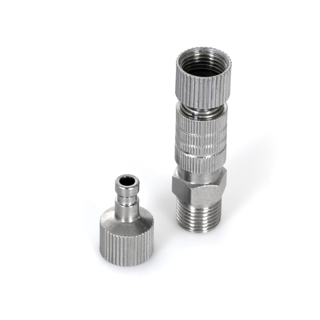 Quick release in-line coupler with G1/8 BSP threads makes it very easy to disconnect your airbrush when cleaning it or when changing to another airbrush.