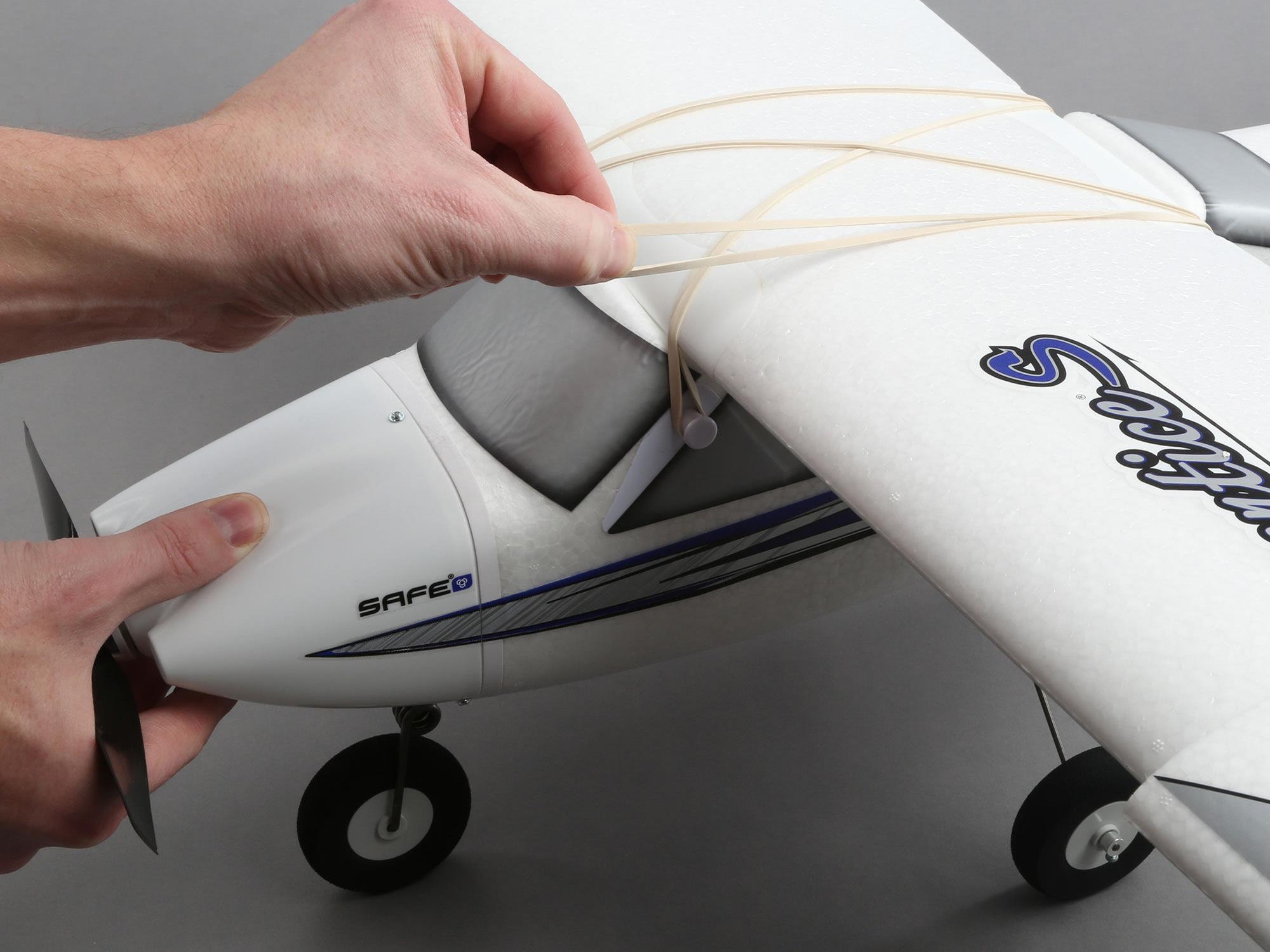 Construction with advanced EPO material delivers a lightweight yet durable airframe that’s tough enough to handle everyday flying punishment without getting bent out of shape. The wing attaches to the fuselage with rubber bands so it can twist or “pop” free in the event of a hard landing or crash to minimize damage. And in the unfortunate event you damage any airframe parts or components and can’t repair them, a full line of replacement parts is readily available.