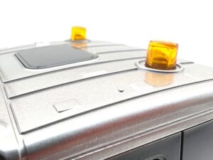 The 2.4GHz transmitter allows for 7 seperate functions. 2.4GHz technology allows for multiple models to run at the same time without interference. The die-cast alloy cab also features lights and music for the ultimate in scale realism.