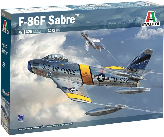 The single-engine jet fighter F-86 Sabre was developed by the American aircraft company North American in the late 1940s and became a symbol of post-war military aviation. The F-86 featured the adoption of the typical swept-wing, the large front air intake and the use of the General-Electric J47 jet engine. The fighter flight performance was impressive for the time and very different from the propeller-driven fighters. The Sabre was armed with six M3 12.7 mm. Browning machine guns installed in the nose. It was widely used by the U.S.A.F. and it played a key role during the Korean War where it could counter the Soviet fighter Mikoyan-Gurevich Mig-15, in the first high-speed jet planes dogfights in the history. The F-86 proved to be extremely effective and a lot of American pilots earned the designation of “ace” during the Korean war with an high number of victories against the enemy planes.