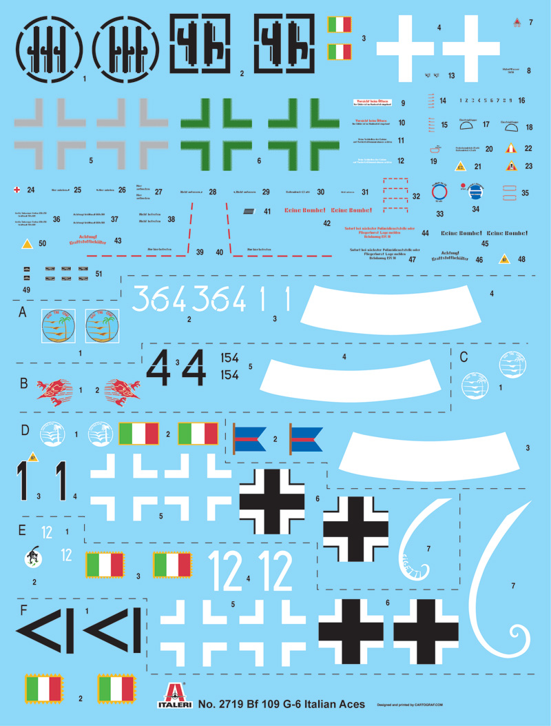 Italeri BF 109 G – 6 ”Italian ACES” Decals for 6 Versions 1/48 2719