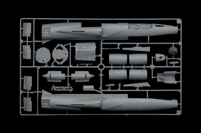 The Lockheed F-104 Starfighter is one of the most famous fighters in the history of aviation and also one with the longest operational life: its history began at the end of the 50s and ended, for some air forces, in mid 2000s. Its unique airframe, with slender fuselage and very little wing surface, made this aircraft ideal as an interceptor. Thanks to the thrust of its General Electric J79-GE-11A afterburning turbojet engine, it could exceed Mach 2,2 with an excellent rate of climb. But it was not very manoeuvrable and difficult to pilot. The F-104G Starfighter was produced on license by several European aviation industries. From the mid-60s, it became the standard interceptor for many NATO countries including Italy, Germany, Holland, Greece, and Turkey. The armament was basically the same found on previous versions, with a 20mm Vulcan cannon and the option to fit under the wings air-to-air missiles, bombs, or additional fuel tanks to increase the airplane’s range. With time, reconnaissance duties were added to the traditional interceptor service. The F-104G was therefore equipped with a dedicated “Orpheus” reconnaissance external pod that gave excellent operational results.