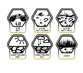 These NEW EX Wasteland Chunky Big Block tyres are mounted on Black wheels (4″) and feature Jetko’s high spec rubber compound. Wastelands are also Belted on the inside to prevent high RPM ballooning, offering every basher incredible durability, traction and control over any surface.