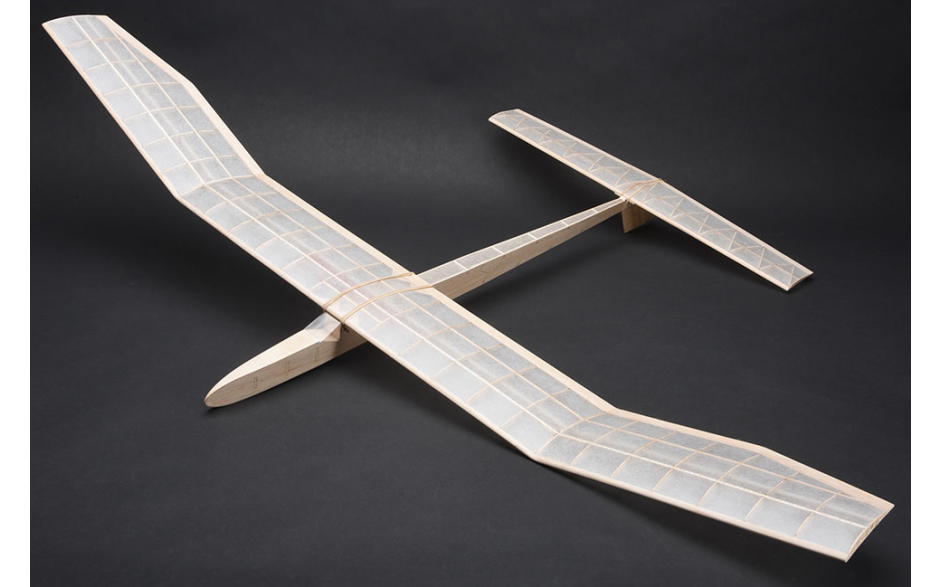 The Caprice is a competition level free flight glider kit that offers outstanding performance and stability. It flies so well that it requires your choice of dethermaliser system to prevent it flying away! The Caprice makes a great choice for an RC or timer dethermaliser, the size also lends itself to a full RC conversion for the more adventurous builders among us. The large 51″ wingspan offers stunning performance and a very rewarding long duration flights. The polyhedral wing offers great stability and the highly efficient aerofoil provides excellent lift. The fuselage is constructed from simple flat balsa sides and the tailplane looks beautiful thanks to the geodetic rib format.