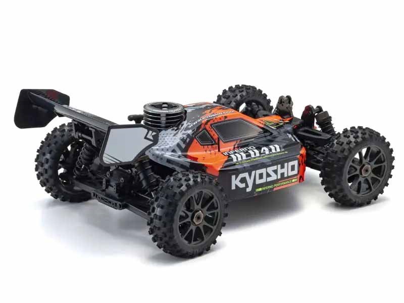 Kyosho’s 1/8 scale Inferno GP buggy series is recognized worldwide as a top-class racing model. The Inferno NEO 4.0, based on the Inferno, comes as a Readyset with a pre-assembled chassis, installed engine, R/C system, and painted body. It’s ready to race after inserting batteries into the included pistol-grip transmitter and chassis and filling the fuel tank. For beginners, the challenging engine break-in process is simplified with a break-in ring that eliminates needle adjustments. The smooth-starting engine makes it easy for those new to GP models. Sharing its body with the electric Inferno NEO 4.0 VE, it comes in two color options. High-torque steering and throttle servos from the previous model provide reliable control, even in demanding off-road conditions. For those new to 1/8 scale GP buggies or experienced R/C enthusiasts, the Inferno NEO 4.0 delivers thrilling large-scale buggy performance.