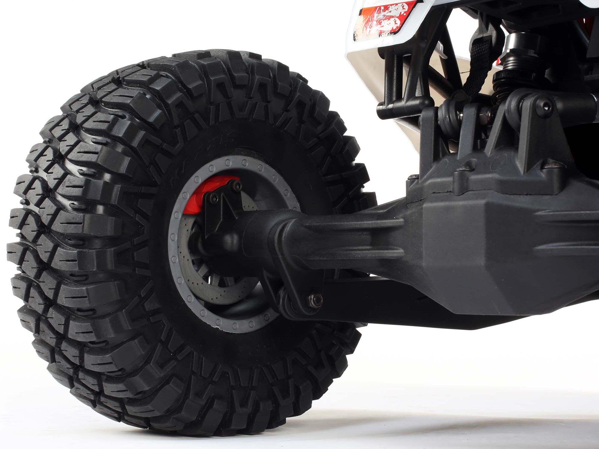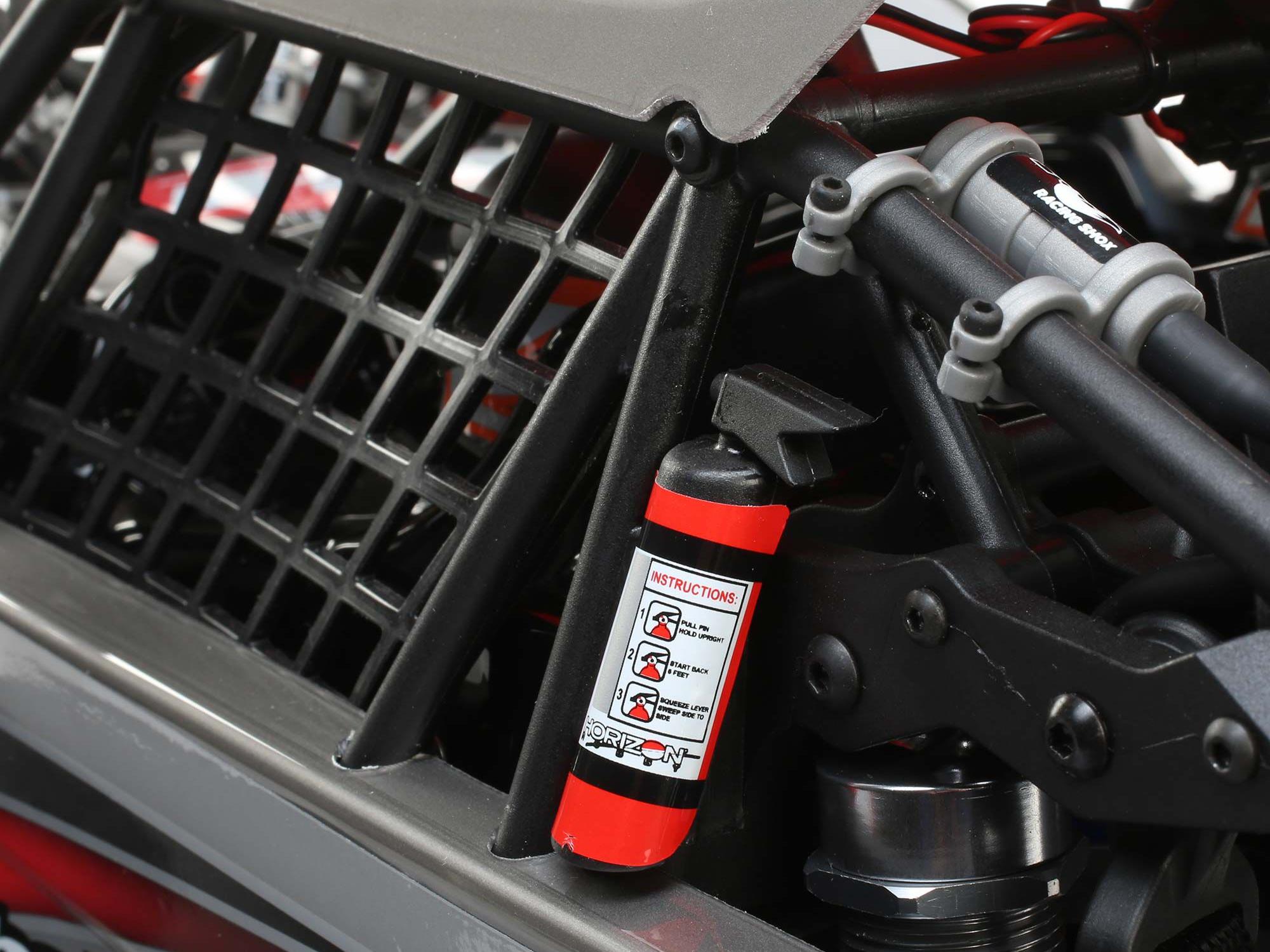 The large tires and new front end geometry increase suspension travel and improve performance over any terrain. Super Rock Rey loves rocky off-road tracks, and the rougher, the better! It also rips through sand, mud, water, and most any other surface condition — with a new roll cage and body work creating the dirt-spitting image of 1:1 desert racing, rock crawling, off-road action.