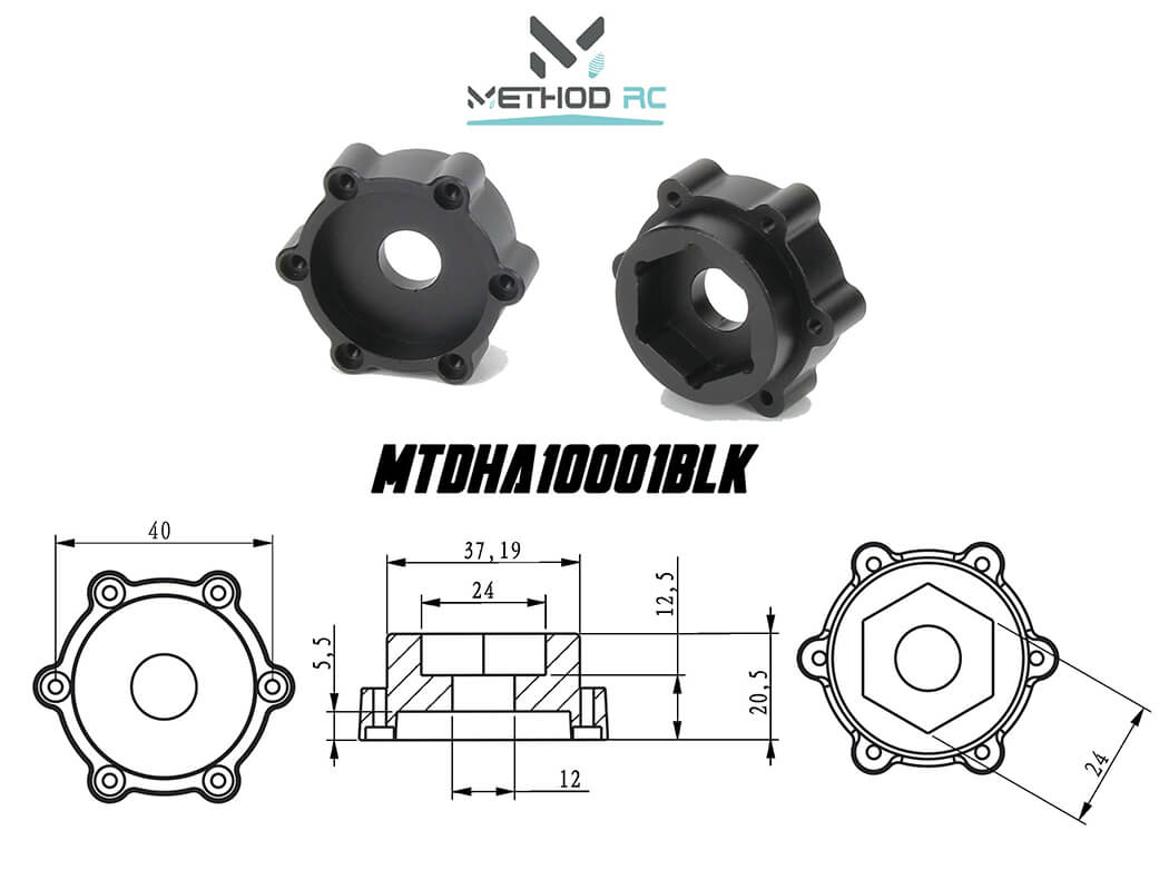METHOD 6X40/12.5MM OFFSET 24MM ALUMINIUM HEX ADAPTOR-XMAXX/XRT(PR) MTDHA10001BLK