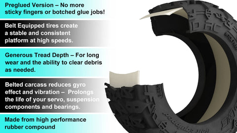 – Relentlessly tested through a variety of platforms, the Geoform’s belt-equipped rubber compound lends itself well to a middle ground of performance and a long wearing compound. We think it’s tuned just right for the basher in mind and for the true offroad enthusiast.