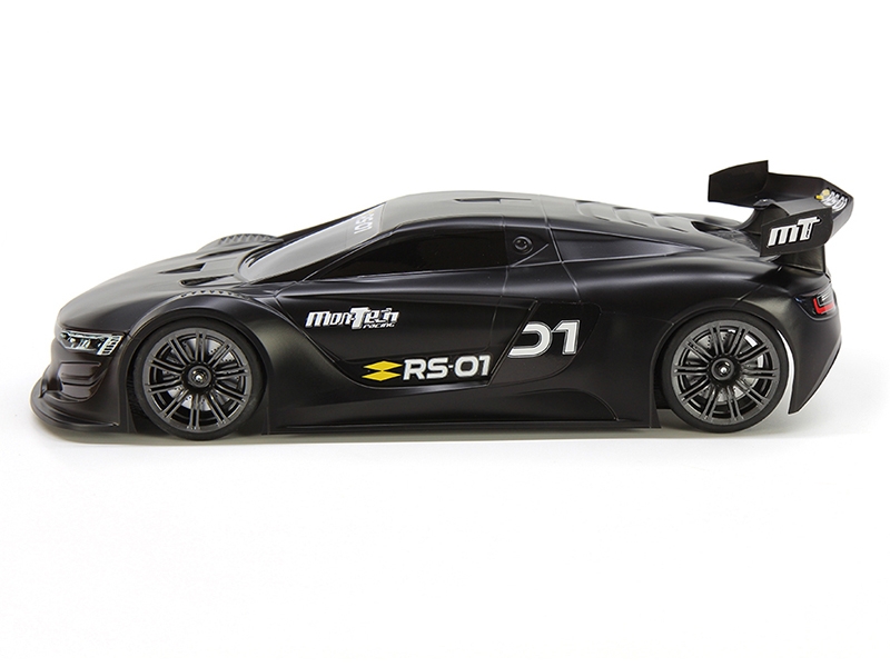 From MonTech Racing is this body for the GT10 category, the RS01. The shell replicates the GT racing model of the well-known French car manufacturer. With aggressive shapes, the RS 01 offers absolute performance. With the RS 01 Mon-Tech Racing offers a model of the highest production quality and performance on the track. The RS 01 can be mounted on all 1:10 scale Touring Car chassis and is molded from high quality polycarbonate. The kit contains pre-cut stickers, window masks and rear wing fixing screws.