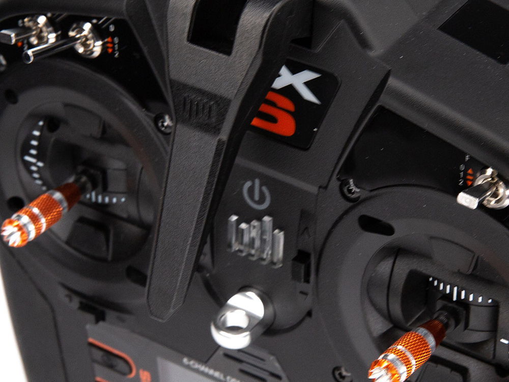 The NX10 transmitter’s Hall-effect sensor gimbals offer long-lasting precision with an ultra-smooth feel that’s conveniently adjustable from the front of the transmitter. Weight distribution and switch placement have been optimized for comfort and precise, fatigue-free control. Rubber grips make it easy to hold the radio securely. Its antenna folds conveniently to the front for compact storage and transport. It also helps to prevent accidental powering on by partially blocking the power button.