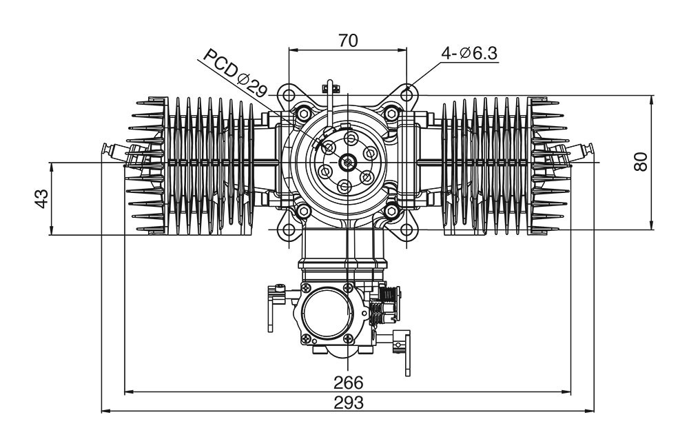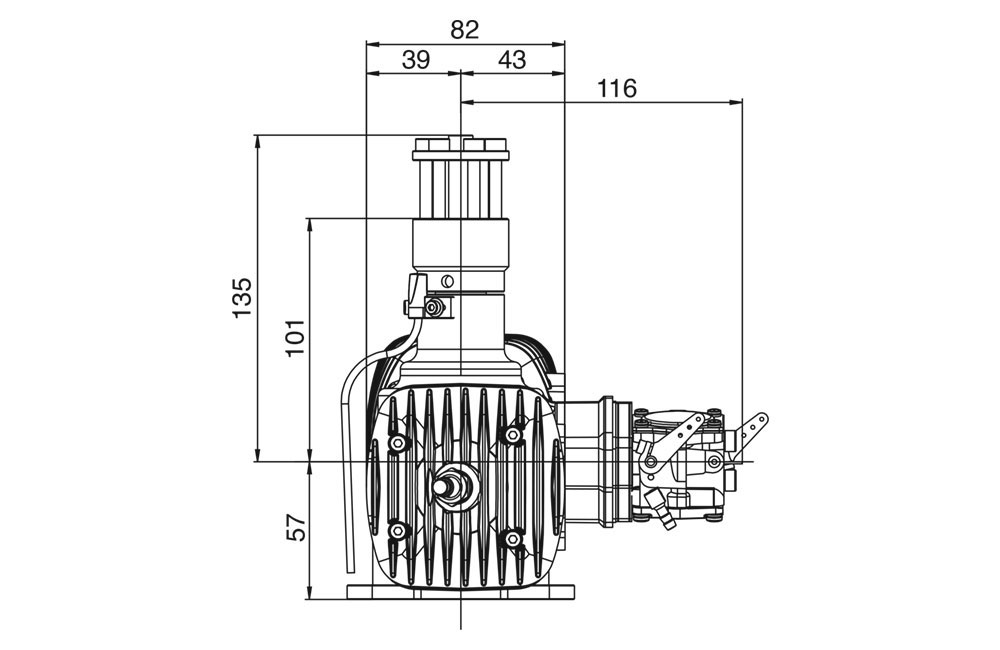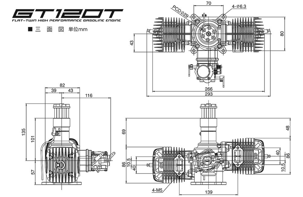 The O.S. GT120T is a 120cc flat twin petrol engine ideally suited to large aerobatic aircraft where only the best will do. The impressive 10ps (9.86hp) power output is perfect to power a 100″ class aerobatic aircraft as used in 3D and IMAC competitions across the world. The crankcase is precision made from aluminium using the latest machining technology OS have on offer. The HS-324A carburettor was designed to produce a special emphasis on throttle response. The GT120T includes a newly designed lightweight ignition unit called the IG-10 to provide a reliable and strong ‘spark’ with easy start ignition timing and protection against backwards running. To make installation simple the mounting dimensions match most popular existing 120cc twin petrol engines.