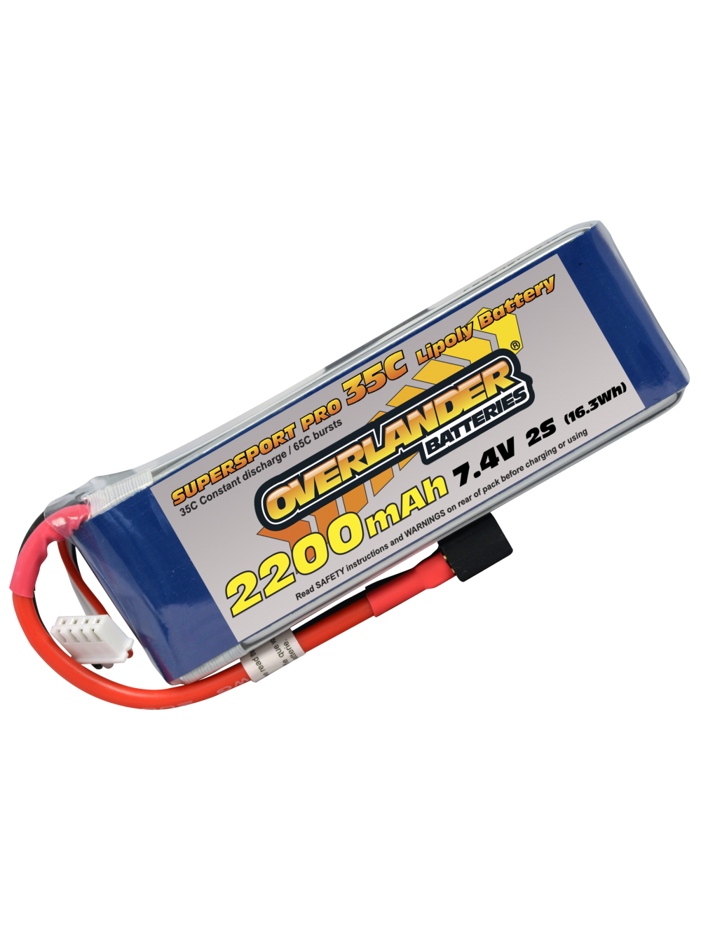 The best just got better. Overlander NEW Sport 2200mAh 2s 7.4v 35C is part of our Supersport range. All Overlander Supersport 30C LiPo cells are manufactured using the “STACKING” method, unlike many of the cheaper Chinese imports which are manufactured using the “WINDING” construction, a much cheaper construction method, with very limited discharge rates (15C – 18C) but often quoted as 25 – 30C. Stacking construction is known for its longevity, and gives stronger more reliable voltage.