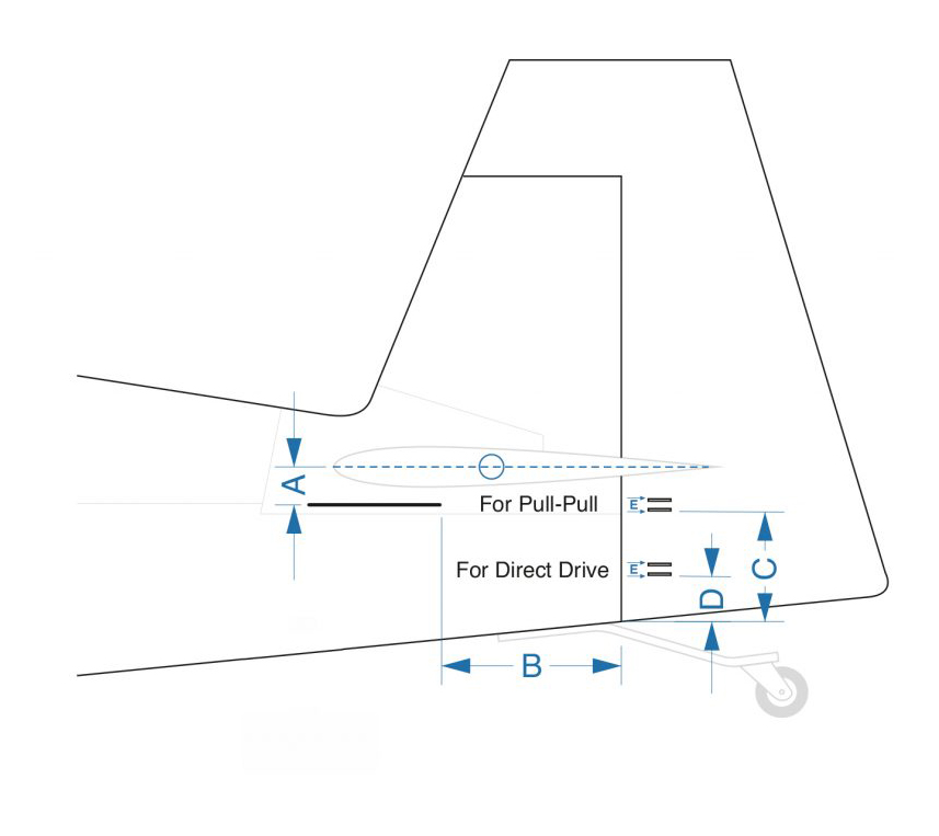 Rudder: 130cm (when using direct – if installing pull pull, no required extension)