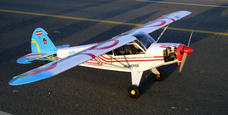 This PA-18 was designed for super light weight, so you can enjoy this plane as a scale plane with flying feel like a high wing trainer.