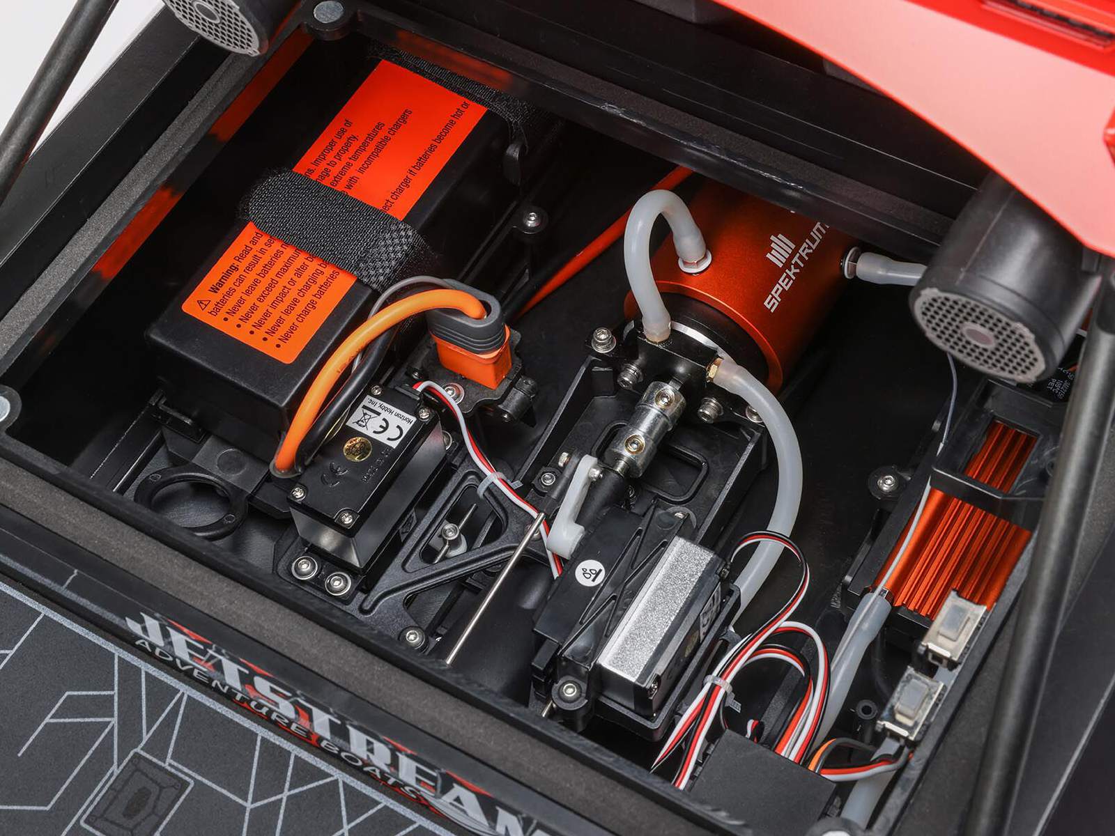 The 1/6 scale Jetstream RTR is the first true basher jet RC boat that’s fun for kids and for experienced boaters itching to pull crazy stunts. Send it in water just 2″ deep. The addition of a reverse gate allows the ultimate in realistic manoeuvring!