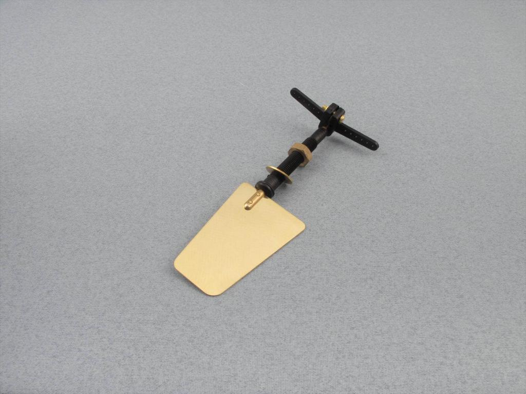 Comprising of a brass rudder riveted to shaft. Glass filled nylon outer bearing, brass nut and washer, rubber sealing ring, glass-filled tiller arm with clamp fitting. Medium rudder blade.