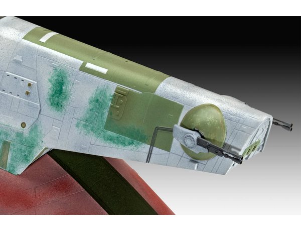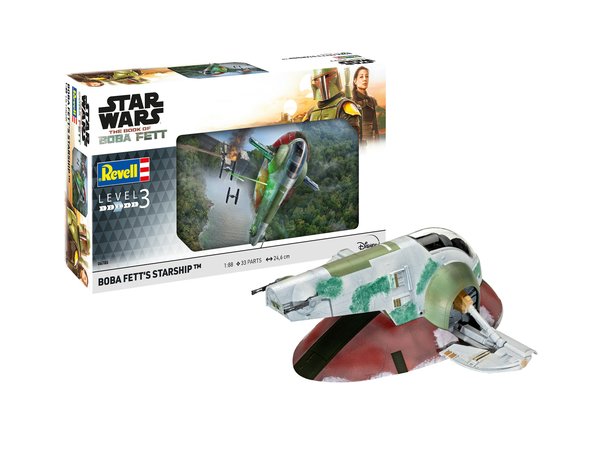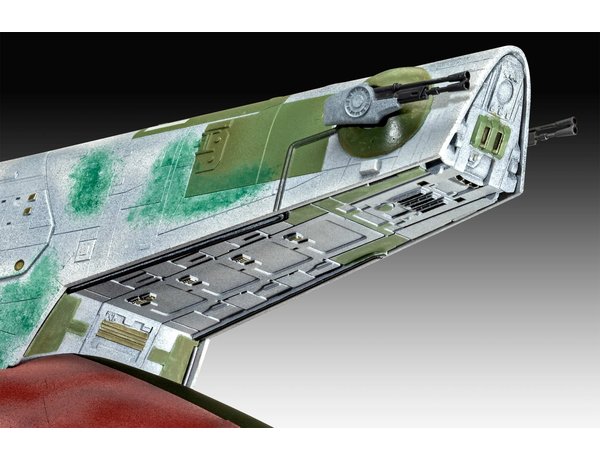 The Revell 1/88 Boba Fett’s Starship Model Kit from the plastic Star Wars model range accurately recreates the bounty hunter ship from the Star Wars franchise. This plastic model kit requires paint and glue to complete.