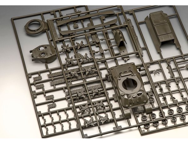 Model kit of the most built US tank in WWII, the Sherman. Deficiencies in armour the Shermans were able to compensate with numerical superiority and great mobility.
