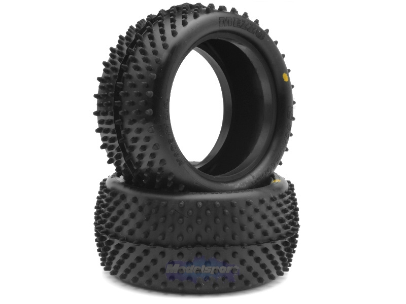 The Mezzo has a varied pin type across the tyre, enabling it to be more suitable to a wider variety of track conditions, including long and short pile astro. The pin type gives improved side traction whilst maintaining forward traction.