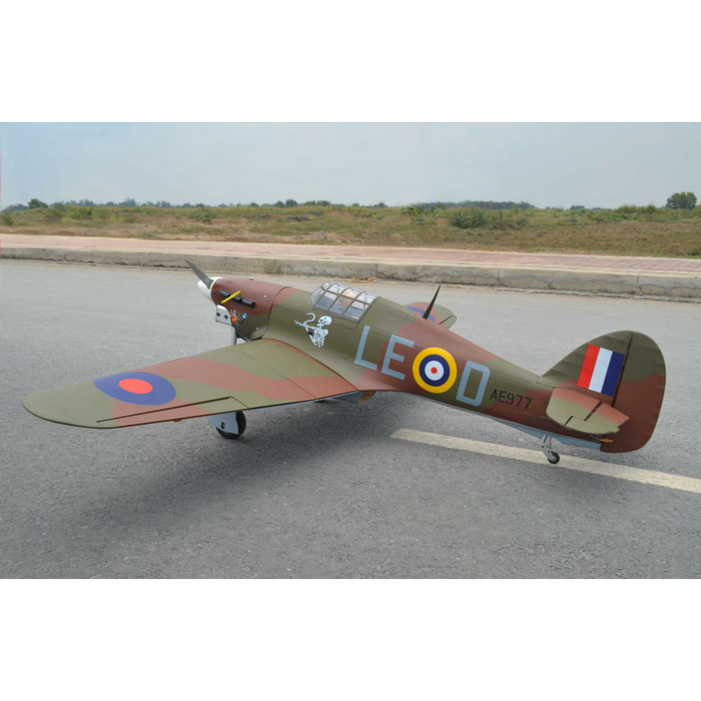 Matching the distinctive humpback profile of the Hurricane whilst beautifully recreating the metal skin wing and wood / fabric rear fuselage detail, Seagulls 82″ span model of AE977 is not something to take for granted. Built from CNC-cut balsa and ply, wrapped in authentic matt Oracover and embellished with a scale detail, not to mention landing lights, a sprung tail wheel and inset trailing edge flaps, its a model that beautifully recreates the formidable full-size fighter. Fit a 33cc petrol engine, hook up the supplied mechanical retracts and shell fly like it too.