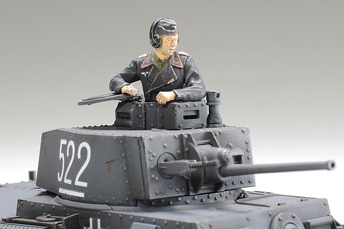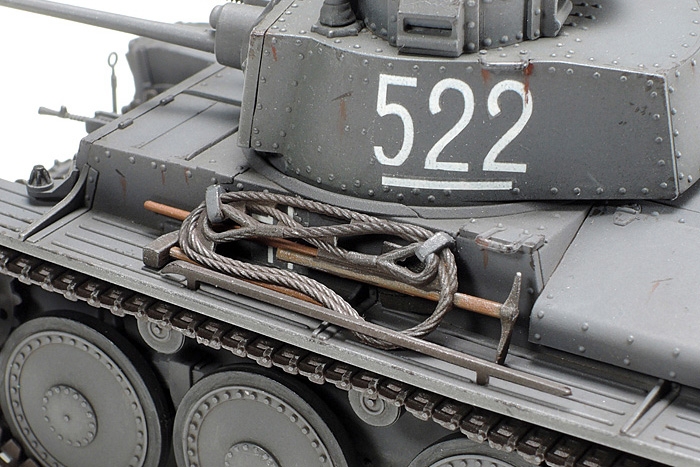 1/48 scale plastic model assembly kit of the German 38(t) Ausf.E/F. ★Length: 98mm, width: 45mm. ★The compact and balanced 38(t) form is accurately captured with an intuitive parts breakdown. ★Hull and turret rivets are expertly depicted. ★Weights in the hull give a realistically heavy feel. ★Utilizes assembly-type tracks with 1-piece straight sections. ★Includes commander torso figure and 2 Eastern Front marking options.